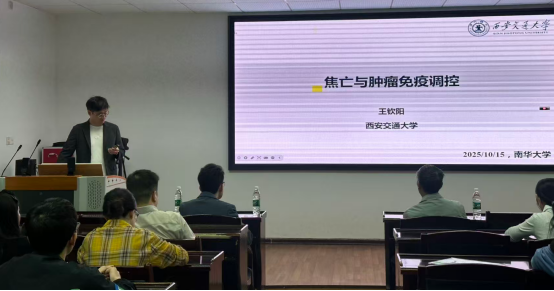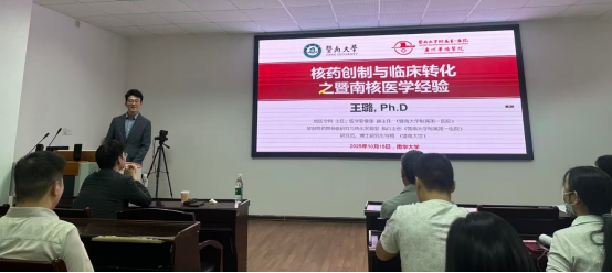 当日,王钦阳教授作了题为“焦亡与肿瘤免疫调控”学术报告,解析细胞溶解死亡(如细胞焦亡)介导抗肿瘤免疫的机制与挑战,并结合团队在溶瘤纳米系统、仿生基因编辑辅助系统等方面的研究,为肿瘤防治研究带来新思路。王璐教授作了题为“核药创制与临床转化之暨南核医学经验”学术报告,王教授从平台基础、核医学核心技术、产业布局及临床转化等维度,介绍了暨南大学附属第一医院在钇-90治疗、新型核药研发等领域的突破,为该校核医学相关学科研究提供借鉴。
